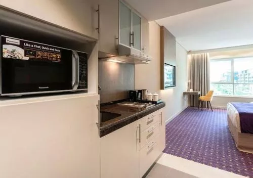 Baie: Halat de baie Prosoape Articole de toaletă gratuite Papuci de casă Uscător de păr Prosoape/lenjerie de pat contra cost Toaletă Duş Hârtie igienică Baie privată General : Seif Fier de călcat Facilităţi de călcat Aer condiţionat Bucătărie: Masă Cuptor cu microunde Frigider Prăjitor de pâine Ustensile de bucătărie Chicinetă Cană fierbător Media/Tehnologie: TV cu ecran plat TV Telefon Canale prin cablu Servicii: Serviciu de trezire Zonă de living: Canapea Zonă de relaxare Facilităţile camerei: Priză lângă pat Mâncăruri și băuturi: Aparat pentru prepararea de ceai/cafea Dormitor: Lenjerie de pat Garderobă sau dulap