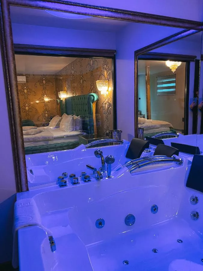 Dimensiuni: 30 mp Numar de camere: 1 camera This apartment's standout features are the hot tub and spa bath. Featuring a private entrance, this air-conditioned apartment comprises 1 bedroom and 1 bathroom with a walk-in shower and a hairdryer. Boasting an outdoor dining area, this apartment also provides soundproof walls, a tea and coffee maker and a flat-screen TV with cable channels. The unit offers 1 bed.