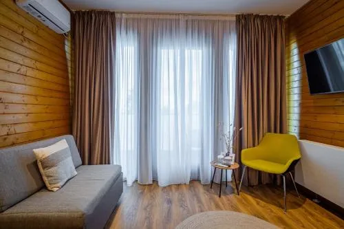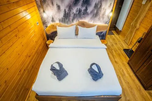 Pozitiv: personalul de la receptie, zona și camere care pun în evidenta frumusețea lemnului (la Q Chalet).
