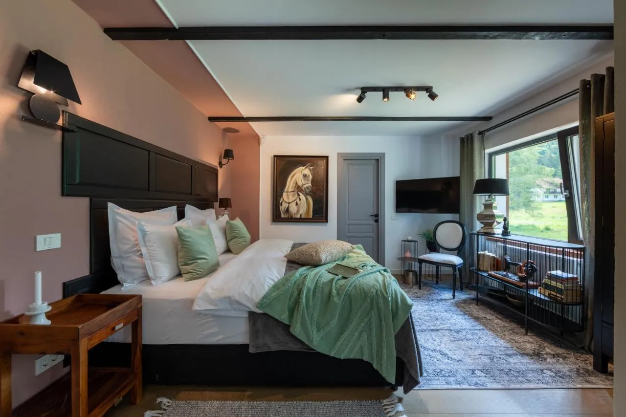 Această cameră dublă are intrare privată, zonă de relaxare, baie privată cu duș și balcon cu vedere la munte. Unitatea include 1 pat.
