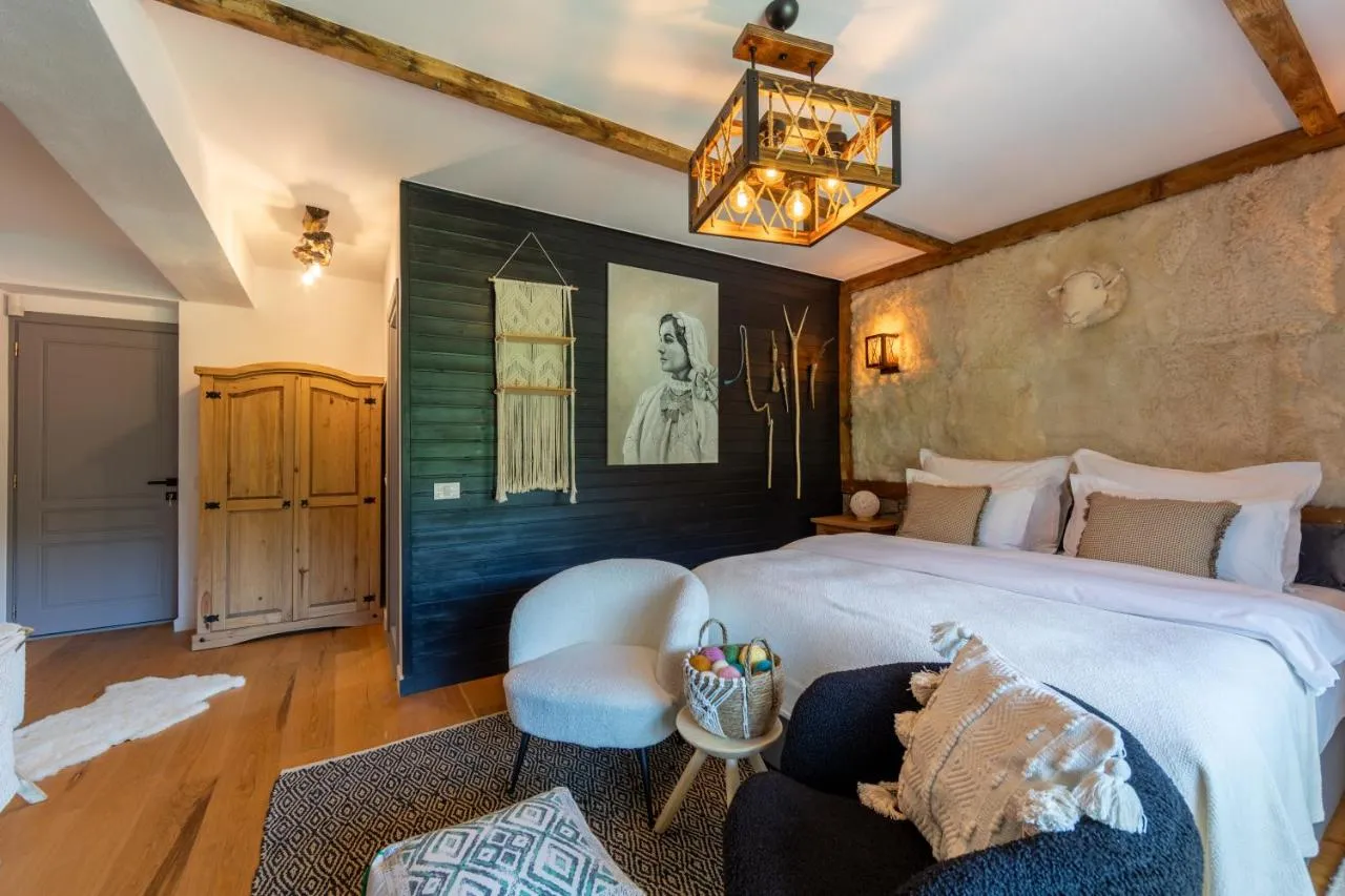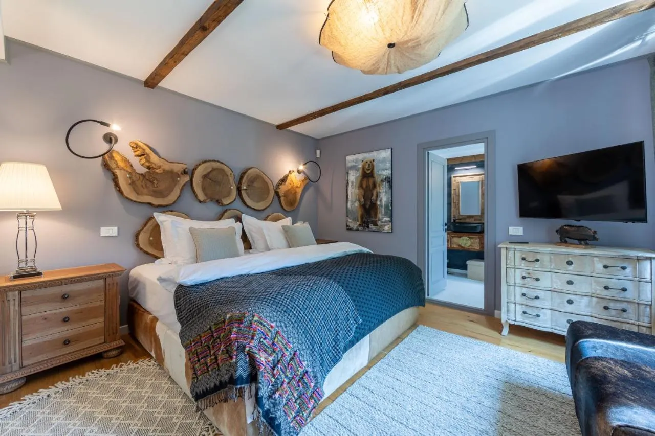 The spacious double room offers a wardrobe, a dressing room, a balcony with mountain views as well as a private bathroom boasting a shower. The unit has 1 bed.