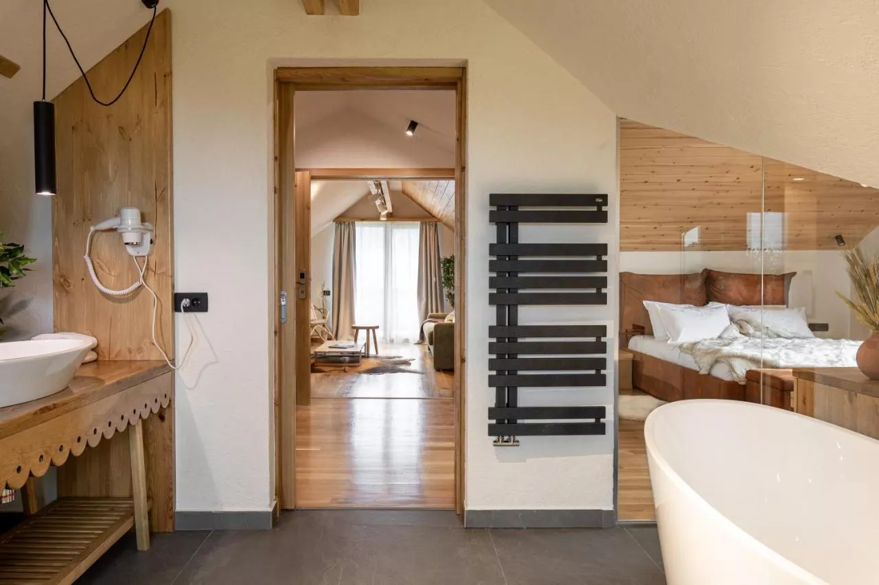 Baie: Halat de baie Prosoape Articole de toaletă gratuite Papuci de casă Uscător de păr Cadă spa Toaletă Duş Hârtie igienică Cadă Baie privată Bucătărie: Mașină de cafea Cană fierbător General : Seif Pardoseală de lemn sau parchet Încălzire Izolare fonică Accesibilitate: Etaje superioare accesibile doar pe scări Media/Tehnologie: TV cu ecran plat TV Dormitor: Paturi extra lungi (> 2 metri) Lenjerie de pat Garderobă sau dulap Vedere: Vedere la munte Vedere la punct de atracţie Zonă de living: Canapea Zonă de relaxare Facilităţile camerei: Priză lângă pat Canapea extensibilă Mâncăruri și băuturi: Aparat pentru prepararea de ceai/cafea Exterior: Balcon