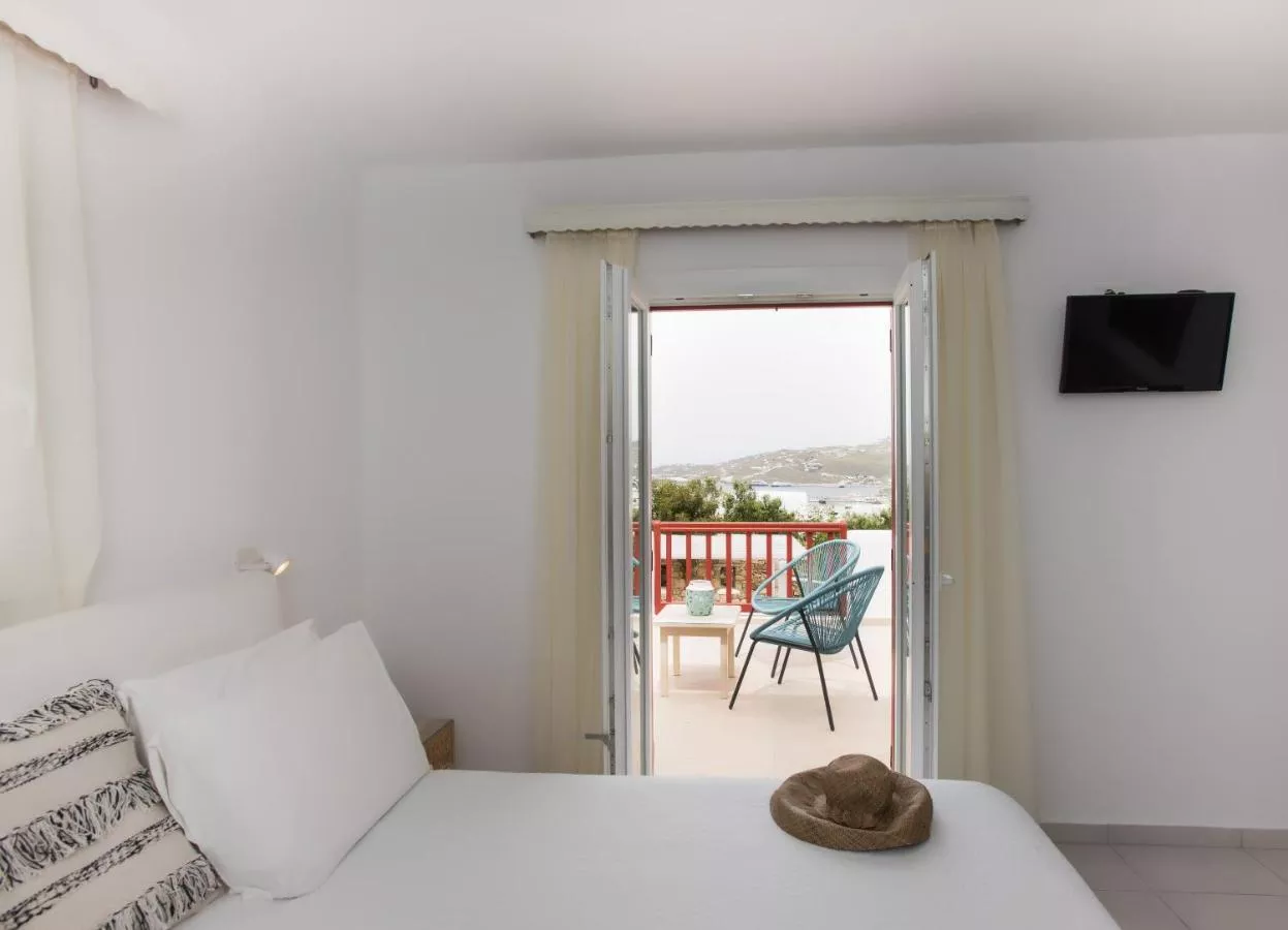 Având o panoramă asupra orașului Mykonos și a Mării Egee, Hotelul Charissi, în stil cicladic, oferă cazare cu aer condiționat și un balcon mobilat. Acesta include un bar de gustări în hol care se deschide către o verandă mare.