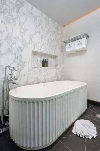 General : Seif Aer condiţionat Bucătărie: Masă Frigider Ustensile de bucătărie Chicinetă Cană fierbător Media/Tehnologie: TV cu ecran plat TV Servicii: Serviciu de trezire Zonă de living: Canapea Zonă de relaxare Zonă de luat masa Facilităţile camerei: uscător de rufe Baie: Prosoape Articole de toaletă gratuite Uscător de păr Toaletă Duş Hârtie igienică Cadă Baie privată Mâncăruri și băuturi: Aparat pentru prepararea de ceai/cafea Minibar Exterior: Balcon Dormitor: Lenjerie de pat Garderobă sau dulap Vedere: Vedere la oraș