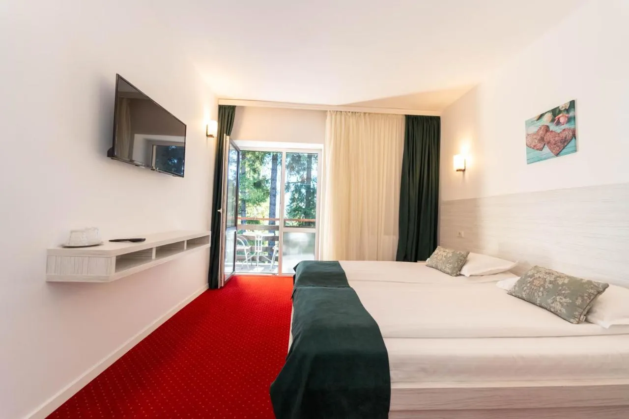 Camera dublă oferă pardoseală cu mochetă, dulap, baie privată cu cabină de duș tip walk-in, precum și balcon cu vedere la munte. Unitatea include 1 pat.
