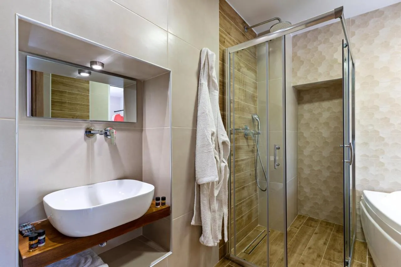 Please note that single beds are also available upon request. Baie privată cu cadă