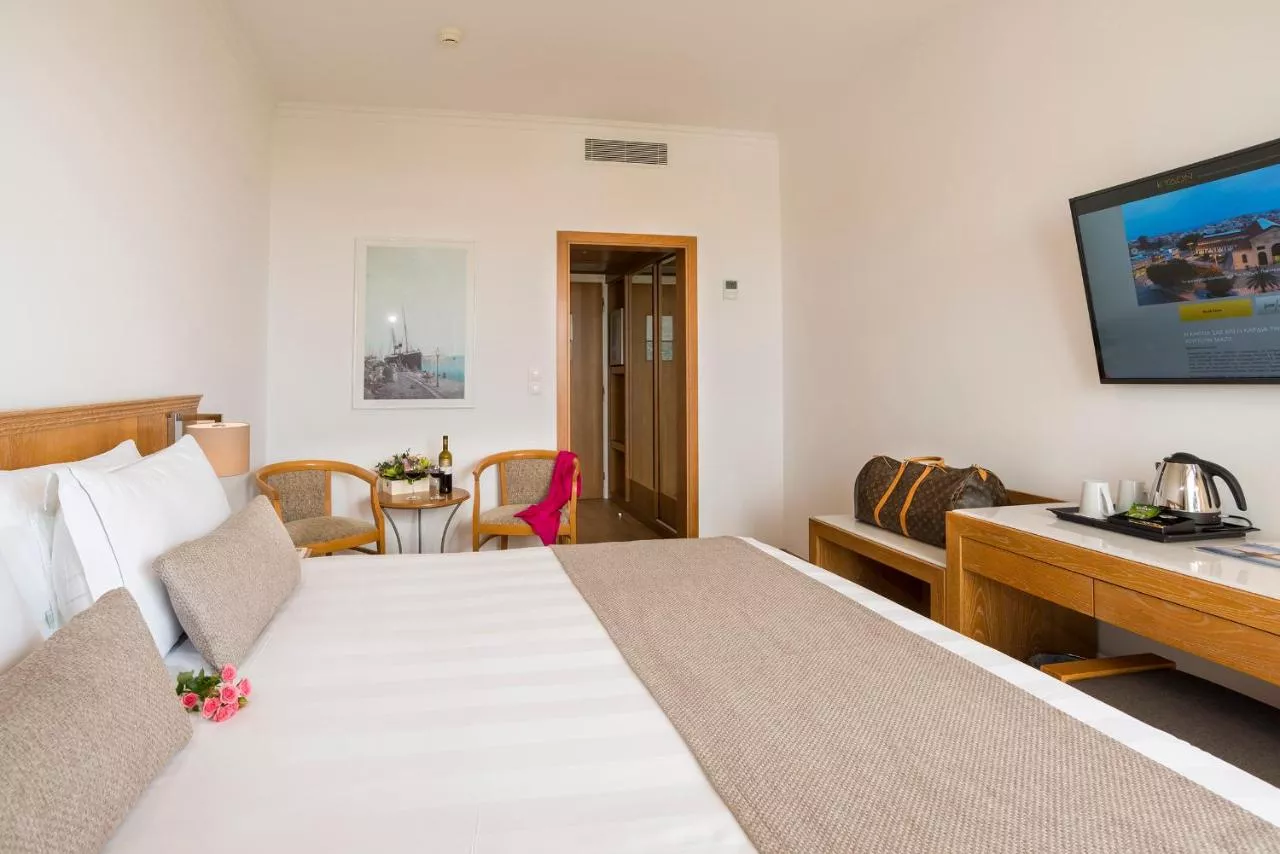 Elegant decorate, toate camerele și suitele cu aer condiționat au un balcon și un televizor Smart cu canale prin satelit. Dotate cu saltele ortopedice și lenjerie din bumbac 100%, fiecare dispune de un seif de dimensiuni pentru laptop și un mini-frigider. Majoritatea camerelor oferă vederi panoramice asupra Orașului Vechi, Portului Venețian și Mării Cretei. Un mini Ipad gratuit este oferit la cerere. Sunt disponibile facilități de călcat.