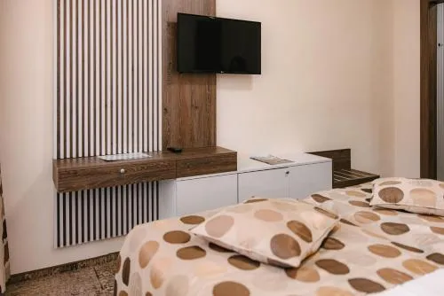 Baie: Halat de baie Toaletă Articole de toaletă gratuite Papuci de casă Cadă sau duş Baie privată Uscător de păr Media/Tehnologie: TV TV cu ecran plat Telefon Canale prin cablu Mâncăruri și băuturi: Minibar Servicii: Serviciu de trezire General : Încălzire Zonă de living: Zonă de relaxare