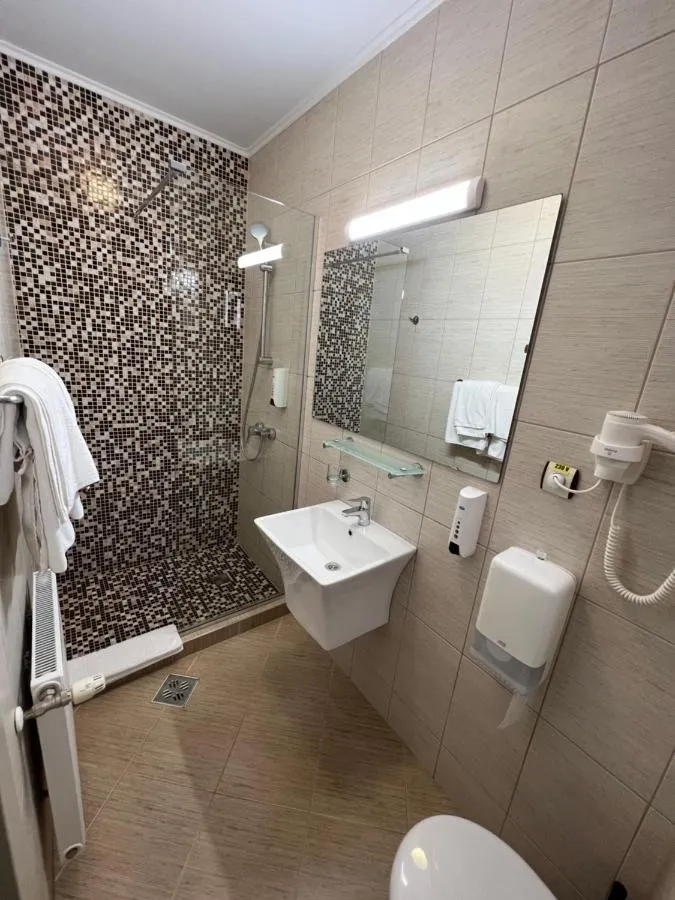 Baie: Toaletă Duş Prosoape Articole de toaletă gratuite Hârtie igienică Cadă Baie privată Uscător de păr