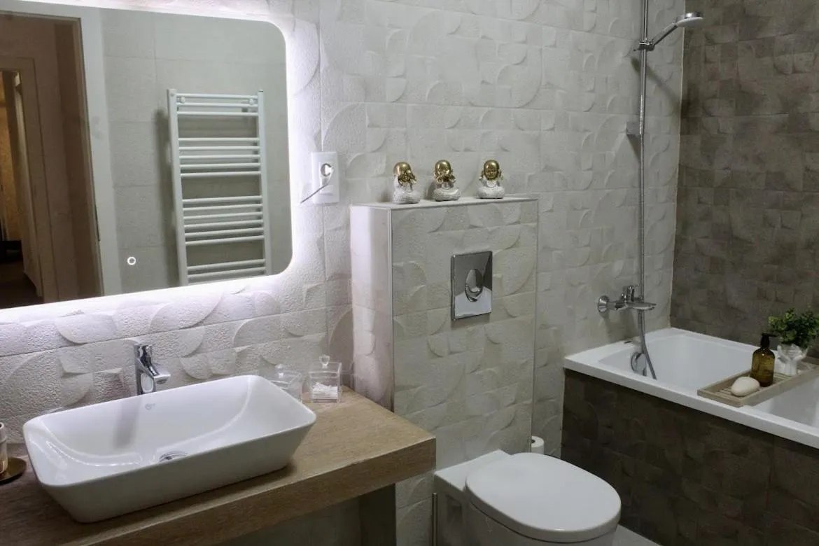 Dimensiuni: 170 mp Numar de camere: 2 camere This luxurious apartment provides a pool with a view, a hot tub and a fireplace. This spacious apartment comprises 1 living room, 2 separate bedrooms and 2 bathrooms with a bath and free toiletries. The well-fitted kitchen has a stovetop, a refrigerator, kitchenware and a tea and coffee maker. This apartment features a washing machine, a private entrance, a flat-screen TV with cable channels and a terrace. The unit offers 2 beds. Baie privată cu cadă