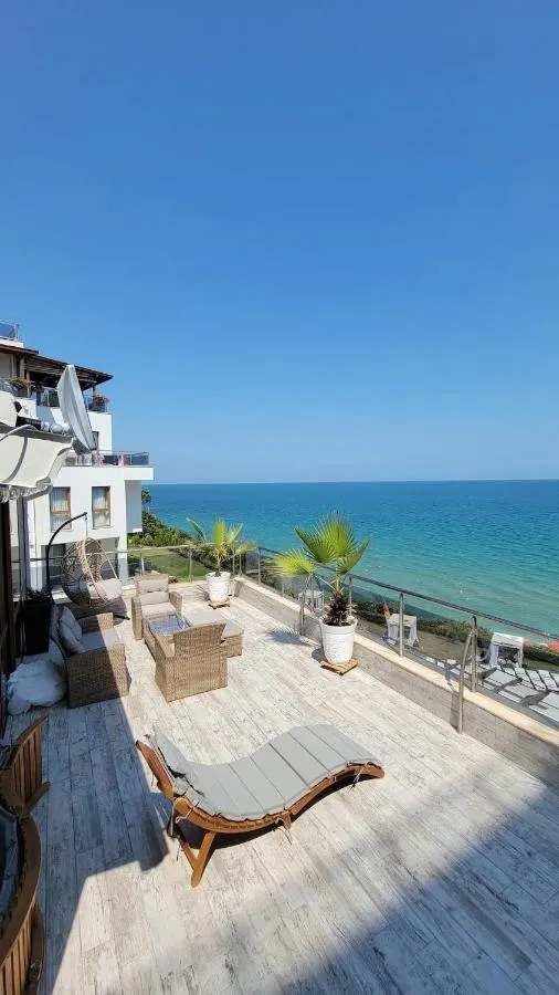 Dimensiuni: 55 mp Numar de camere: 10 camere Apartament cu aer condiționat, terasă cu vedere la mare, bucătărie complet utilată, TV prin cablu și DVD player. Baie privată cu cadă