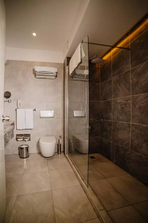 Dimensiuni: 24 mp Numar de camere: 20 camere The sauna is a top feature of this twin/double room. This air-conditioned twin/double room is comprised of a flat-screen TV with satellite channels, a private bathroom as well as a balcony with sea views. Baie privată cu duș