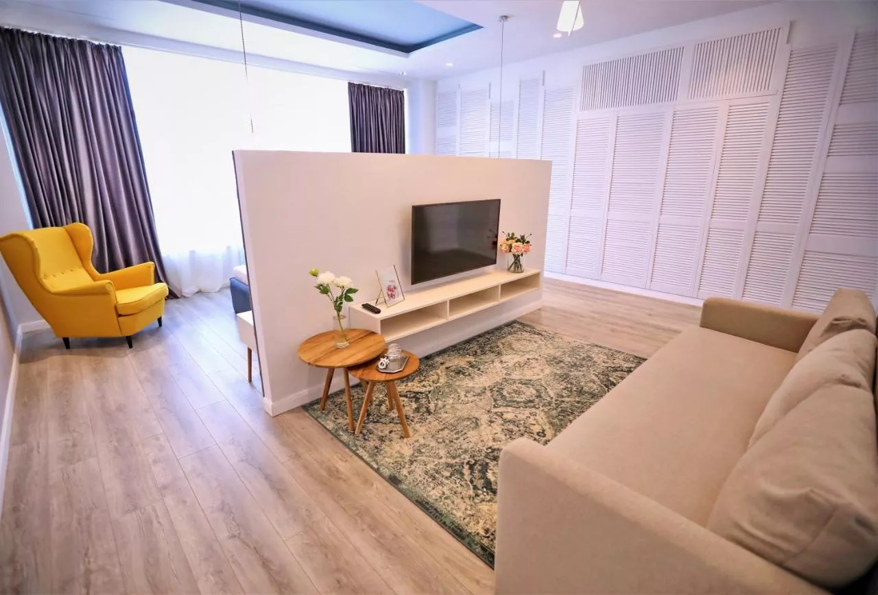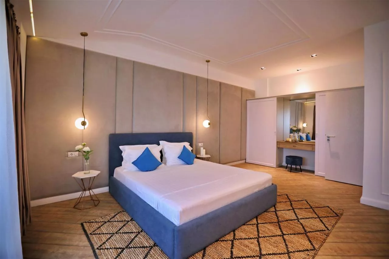 Dimensiuni: 110 mp Numar de camere: 1 camera Acest apartament spațios are 1 living, 2 dormitoare separate și 2 băi cu duș tip walk-in și articole de toaletă gratuite. De asemenea, apartamentul are aer condiționat, TV cu ecran plat, minibar, zonă de relaxare, dulap și vedere la o stradă liniștită. Unitatea de cazare este prevăzută cu 2 paturi.