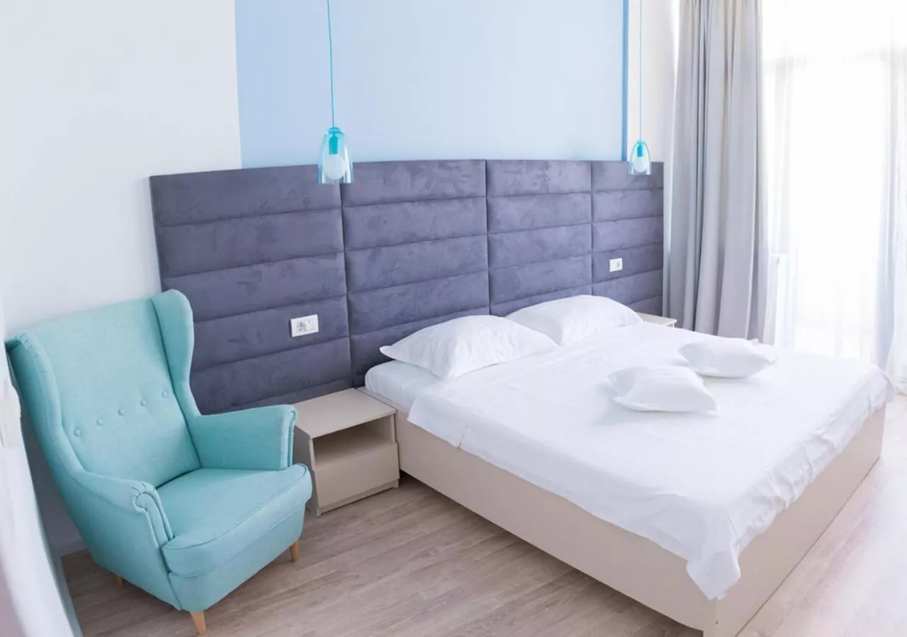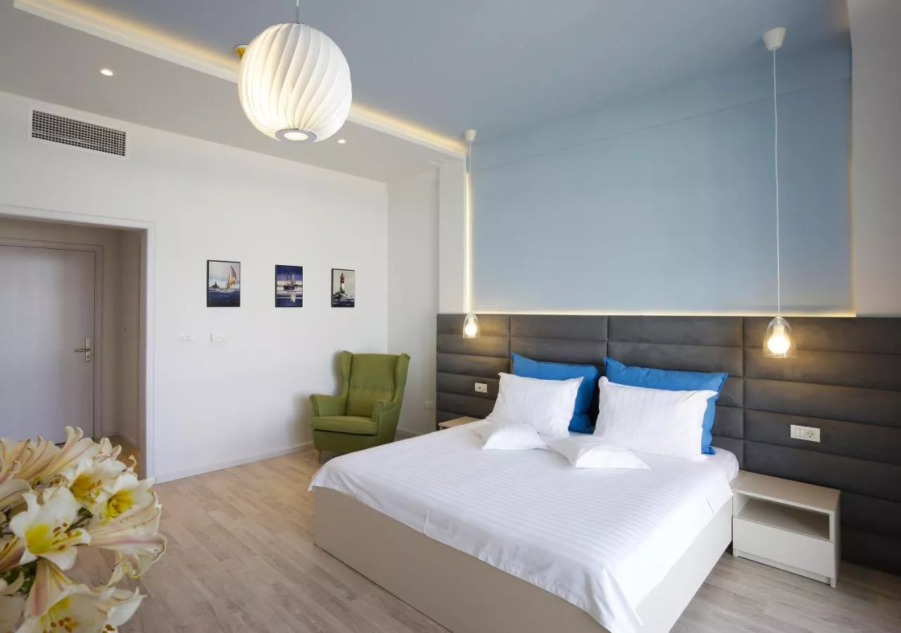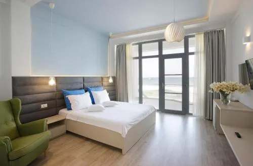 Dimensiuni: 35 mp Numar de camere: 1 camera Această cameră dublă spațioasă are aer condiționat, minibar, baie privată cu duș tip walk-in și balcon cu vedere la mare. Unitatea de cazare este prevăzută cu 1 pat.