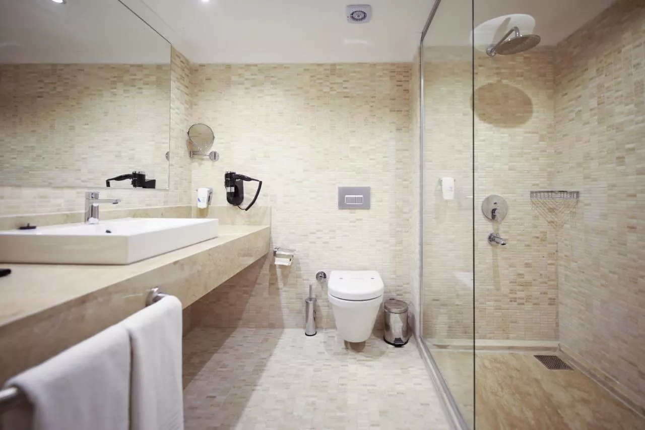 Baie: Halat de baie Prosoape Articole de toaletă gratuite Papuci de casă Uscător de păr Toaletă Duş Hârtie igienică Baie privată Bucătărie: Mașină de cafea General : Seif Pardoseală de lemn sau parchet Intrare privată Încălzire Aer condiţionat Vedere: Vedere la mare Vedere la piscină Vedere la curtea interioară Accesibilitate: Etaje superioare accesibile cu liftul Întreaga unitate accesibilă cu scaunul cu rotile Media/Tehnologie: TV cu ecran plat TV Telefon Canale prin cablu Canale prin satelit Dormitor: Paturi extra lungi (> 2 metri) Lenjerie de pat Dressing Garderobă sau dulap Servicii: Serviciu de trezire Zonă de living: Canapea Zonă de relaxare Exterior: Terasă Balcon Mâncăruri și băuturi: Minibar
