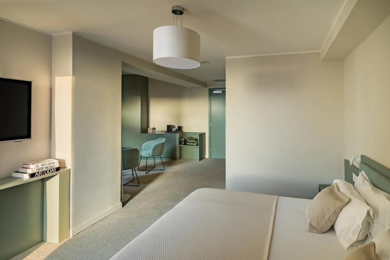 Dimensiuni: 24 mp Numar de camere: 20 camere Această cameră dublă are o baie privată cu duş sau cadă, bideu, uscător de păr, halate de baie și articole de toaletă gratuite. De asemenea, apartamentul are aer condiționat, TV cu ecran plat și servicii de streaming, pereți izolați fonic, minibar, aparat de ceai/cafea, precum și vedere la mare. Unitatea este prevăzută cu 1 pat.
