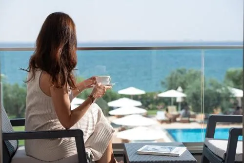 Dimensiuni: 35 mp Numar de camere: 3 camere Suită prevăzută cu o piscină cu vedere. Această suită are 1 living, 1 dormitor separat și 1 baie cu cadă și articole de toaletă gratuite. Suita are pereți izolați fonic, aer condiționat, TV cu ecran plat cu servicii de streaming, aparat de ceai și cafea, zonă de relaxare și vedere la mare. Unitatea de cazare include 2 paturi. Baie privată cu cadă