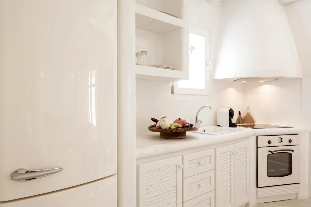 Vilele și suitele în stil cicladic sunt echipate cu facilități de ultimă generație, oferind piscine private, terase cu vedere la mare și cazi cu hidromasaj.
