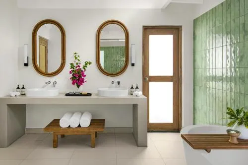 Dimensiuni: 98 mp Numar de camere: 1 camera Guests will have a special experience as the villa provides a pool with a view. Boasting a private entrance, this air-conditioned villa features 1 bedroom and 1 bathroom with a walk-in shower and a bidet. The villa features a flat-screen TV with cable channels, soundproof walls, a minibar, a tea and coffee maker as well as sea views. The unit has 1 bed.