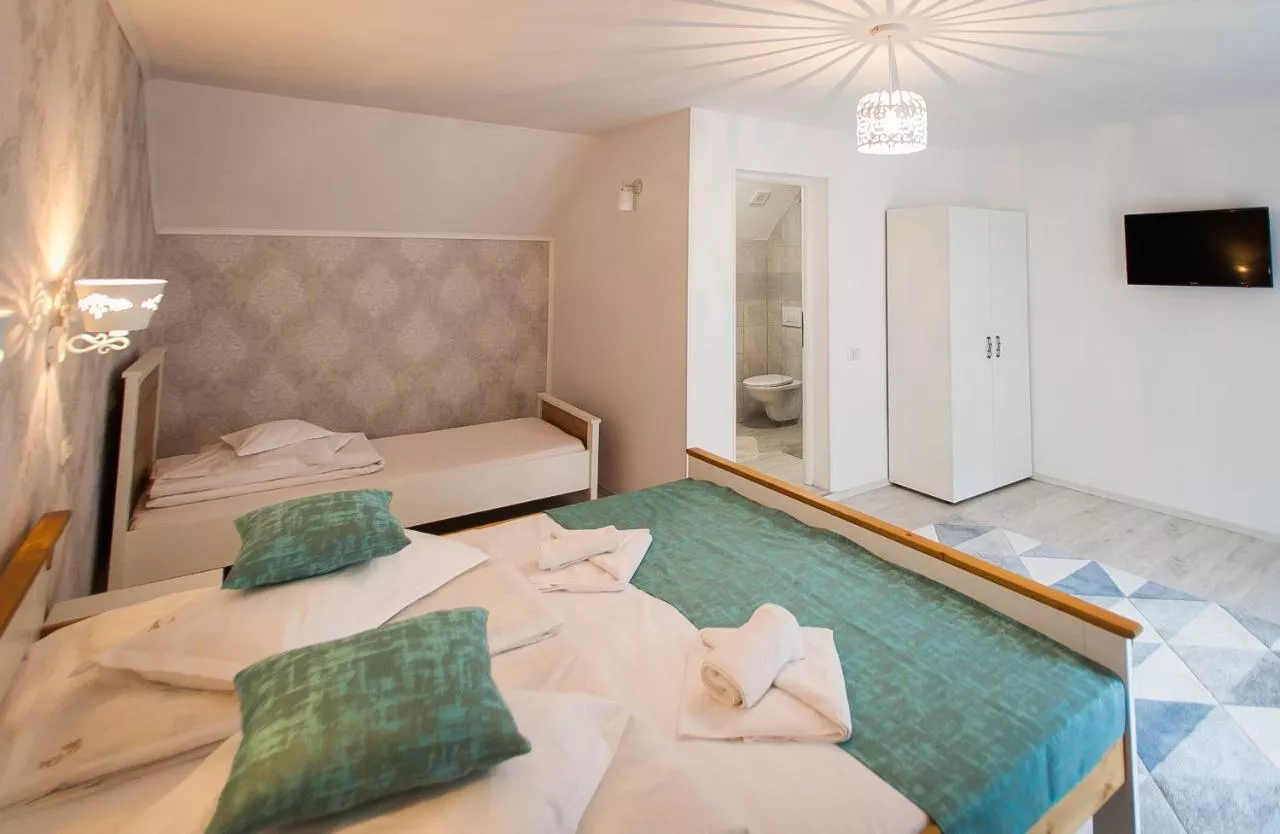 Dimensiuni: 25 mp Numar de camere: 1 camera Providing free toiletries, this triple room includes a private bathroom with a shower, a hairdryer and slippers. The triple room provides a wardrobe, parquet floors, heating and a flat-screen TV. The unit offers 2 beds.