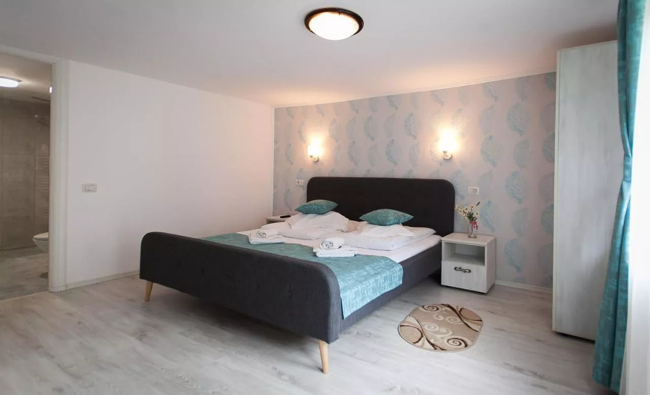 Dimensiuni: 16 mp Numar de camere: 2 camere Providing free toiletries, this double room includes a private bathroom with a shower, a hairdryer and slippers. This double room features a wardrobe, parquet floors, a flat-screen TV and an outdoor dining area. The unit offers 1 bed.