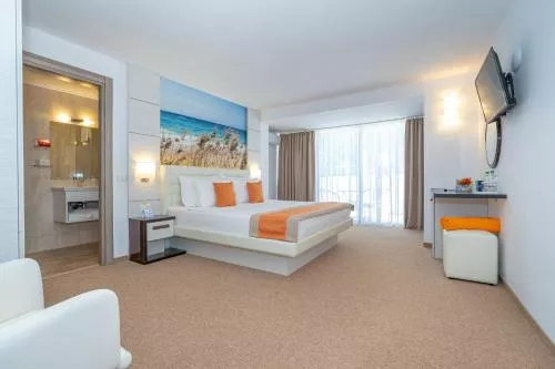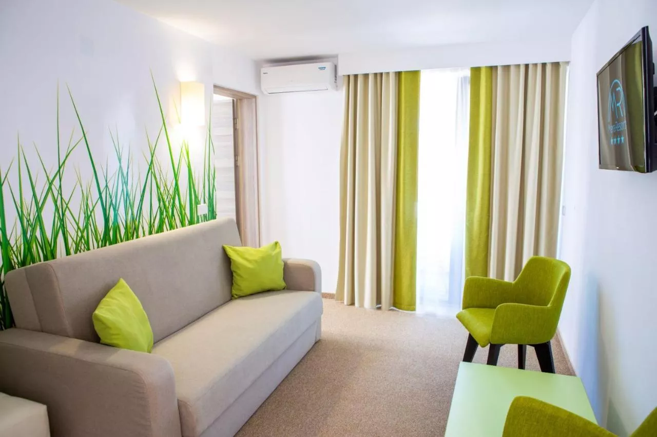 Dimensiuni: 28 mp Numar de camere: 6 camere Această suită include 1 cameră de zi, 1 dormitor separat și 2 băi cu duș și articole de toaletă gratuite. Această suită oferă aer condiționat, un minibar, un TV cu ecran plat cu canale prin cablu și o terasă. Unitatea de cazare include 2 paturi.