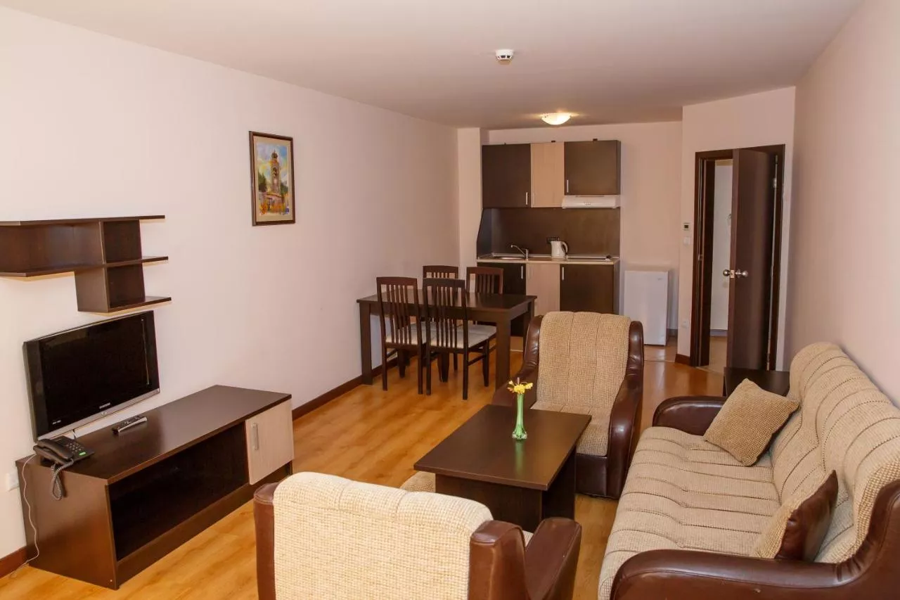Într-un radius de 5 minute de mers pe jos, puteți ajunge în partea istorică a Bansko și la diverse baruri, restaurante și magazine. Transportul cu autobuzul până la telecabina este inclus.