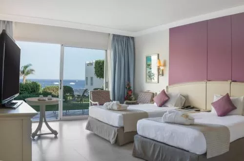 Individually decorated room with panoramic views of the Red Sea, pale wooden furniture and Egyptian style covers, curtains and bed linens. This room rate is applicable for Egyptians and local residents only. Please note that all inclusive meal plans does not include any alcoholic drinks.