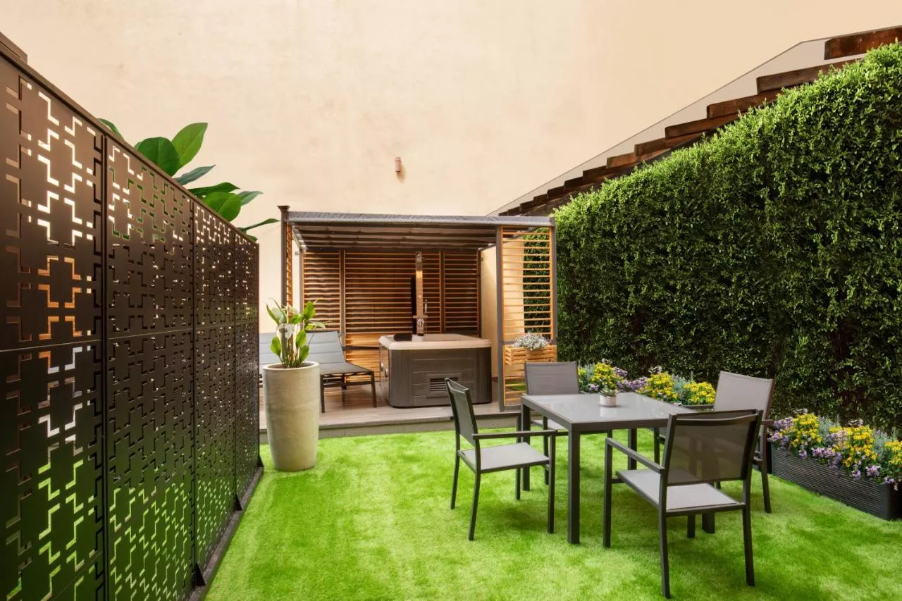 Bucătărie: Mașină de cafea Masă Cuptor Frigider Plită de gătit Ustensile de bucătărie Chicinetă Cană fierbător Bucătărie Maşină de spălat General : Seif Intrare privată Încălzire Aer condiţionat Media/Tehnologie: TV cu ecran plat TV Zonă de living: Canapea Zonă de relaxare Zonă de luat masa Baie: Prosoape Articole de toaletă gratuite Uscător de păr Toaletă Duş bideu Hârtie igienică Baie privată Exterior: Terasă Facilităţile camerei: Priză lângă pat Canapea extensibilă Mâncăruri și băuturi: Aparat pentru prepararea de ceai/cafea Minibar Dormitor: Lenjerie de pat Garderobă sau dulap Distanțare fizică: Aer condiționat individual pentru fiecare cameră de la proprietate Activităţi: Cadă cu hidromasaj