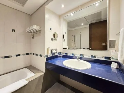 Baie: Halat de baie Prosoape Articole de toaletă gratuite Papuci de casă Uscător de păr Prosoape/lenjerie de pat contra cost Toaletă Duş bideu Hârtie igienică Cadă Baie privată General : Seif Fier de călcat Facilităţi de călcat Pardoseală de gresie/marmură Izolare fonică Aer condiţionat Accesibilitate: Etaje superioare accesibile cu liftul Întreaga unitate accesibilă cu scaunul cu rotile Media/Tehnologie: TV cu ecran plat TV Telefon Servicii: Serviciu de trezire Facilităţile camerei: Priză lângă pat Mâncăruri și băuturi: Aparat pentru prepararea de ceai/cafea Minibar Dormitor: Lenjerie de pat Garderobă sau dulap Vedere: Vedere la oraș Bucătărie: Cană fierbător Distanțare fizică: Aer condiționat individual pentru fiecare cameră de la proprietate