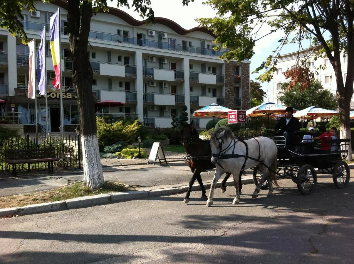 Hotelul Corsa este situat într-o zonă liniștită, la doar 10 metri de plajele cu nisip din Mangalia, pe litoralul Mării Negre. Oferă camere cu aer condiționat și televiziune prin cablu, unele având vedere la mare.