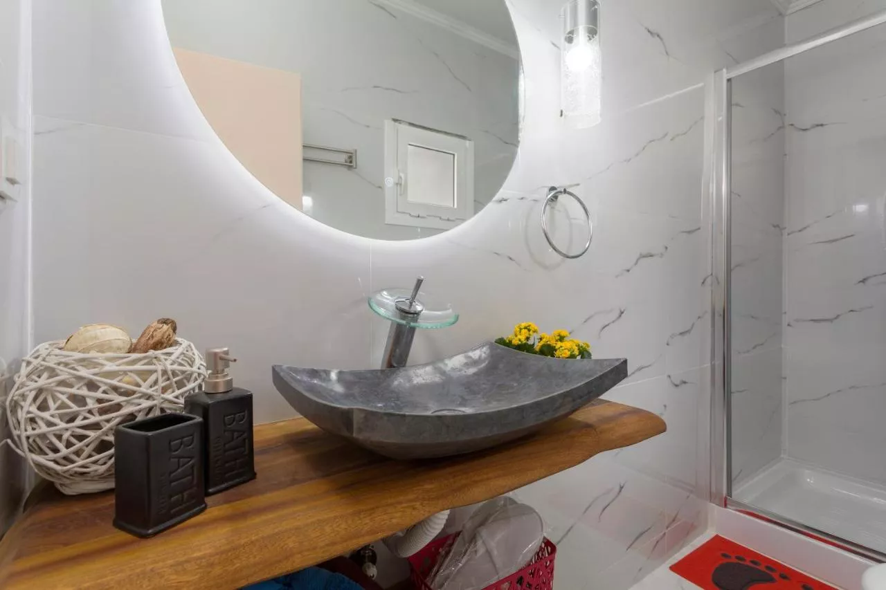 Dimensiuni: 50 mp Numar de camere: 2 camere This holiday home boasts a pool with a view and a hot tub. Featuring a private entrance, this air-conditioned holiday home consists of 1 living room, 1 separate bedroom and 1 bathroom with a walk-in shower and a bidet. Guests will find a stovetop, a refrigerator, kitchenware and an oven in the fully equipped kitchen. The holiday home also offers a barbecue. Boasting a terrace with sea views, this holiday home also provides a washing machine and a flat-screen TV with streaming services. The unit offers 2 beds.