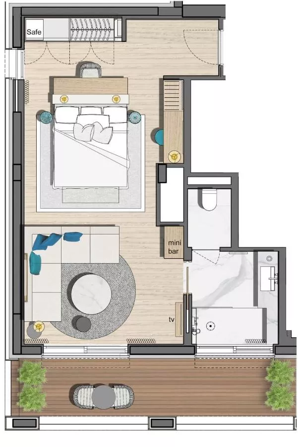 Dimensiuni: 39 mp Numar de camere: 1 camera Această suită are 1 living, 1 dormitor separat și 1 baie cu duș și articole de toaletă gratuite. De asemenea, suita oferă aer condiționat, TV cu ecran plat și canale prin satelit, pereți izolați fonic, minibar, aparat de ceai/cafea și vedere la mare. Unitatea oferă 2 paturi.