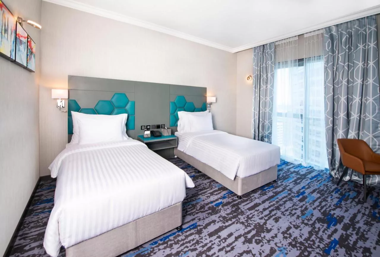 Dimensiuni: 33 mp Numar de camere: 1 camera The spacious twin room has a private bathroom, air conditioning, soundproof walls, as well as a seating area with a flat-screen TV. The twin room features carpeted floors and features a safe deposit box, an electric kettle and heating. The unit has 2 beds.
