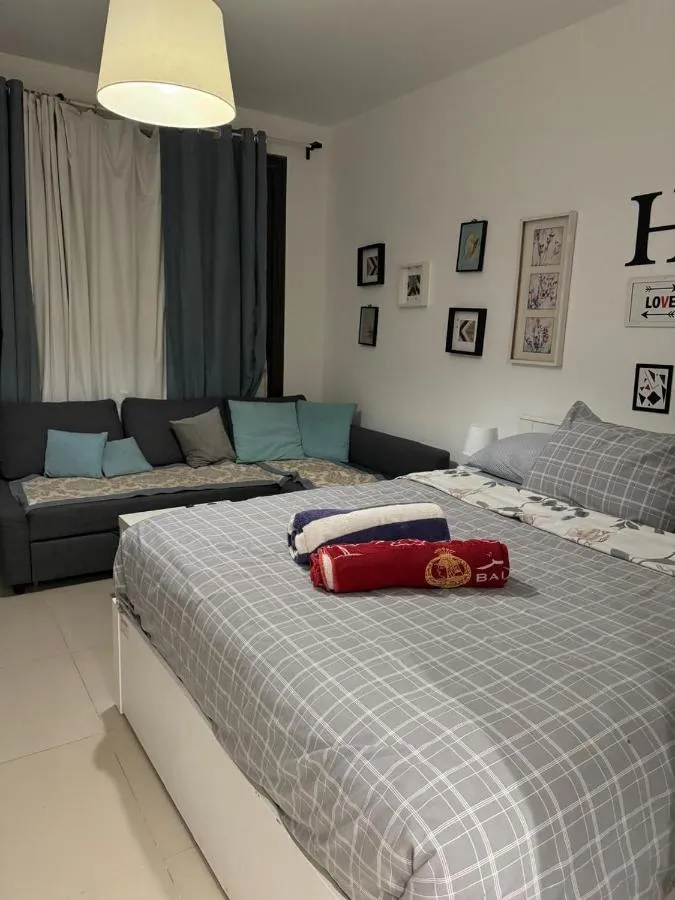 Situat în El Gouna, Studio în G cribs, cu mobilier și electrocasnice de lux și noi, complet echipat, cu aer condiționat, un studio confortabil și curat, cu vedere directă la piscina încălzită, la parter cu grădină.