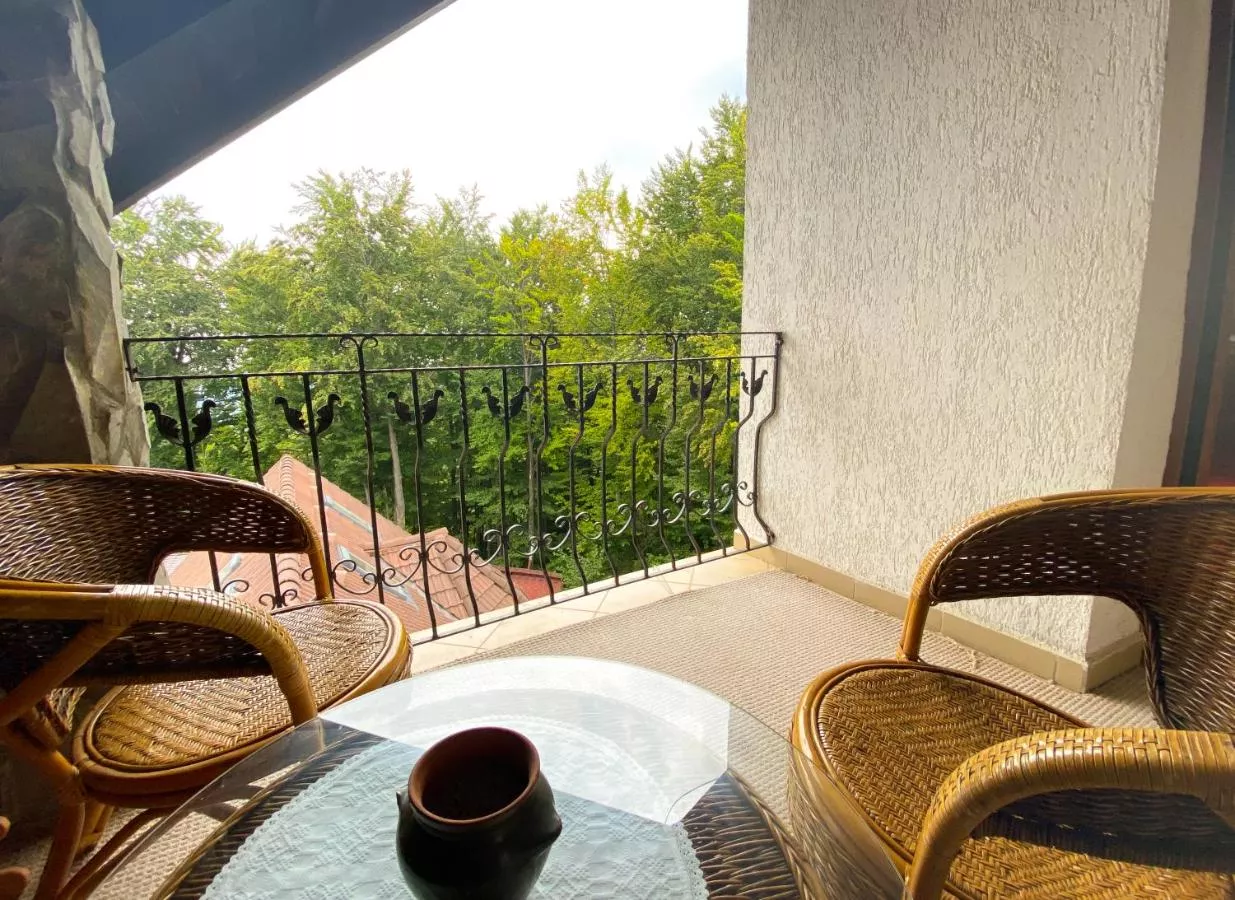 Dimensiuni: 40 mp Numar de camere: 1 camera Suita are un dormitor, o cameră de zi cu canapea, TV și minibar și o baie privată cu articole de toaletă gratuite și uscător de păr. De asemenea, are un balcon cu vedere la munte. Baie privată cu duș
