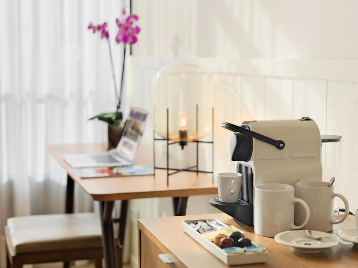 General : Seif pentru laptop Seif Pardoseală de lemn sau parchet Fier de călcat Facilităţi de călcat Hipoalergică Încălzire Izolare fonică Aer condiţionat Bucătărie: Mașină de cafea Accesibilitate: Etaje superioare accesibile cu liftul Media/Tehnologie: TV cu ecran plat TV Telefon Servicii: Serviciu de trezire Facilități de siguranță: Purificatoare de aer Baie: Prosoape Articole de toaletă gratuite Uscător de păr Toaletă Duş Hârtie igienică Baie privată Facilităţile camerei: Priză lângă pat Vedere: Vedere la curtea interioară Mâncăruri și băuturi: Aparat pentru prepararea de ceai/cafea Minibar Dormitor: Lenjerie de pat Garderobă sau dulap Distanțare fizică: Aer condiționat individual pentru fiecare cameră de la proprietate Curățenie și dezinfectare: Dezinfectant pentru mâini