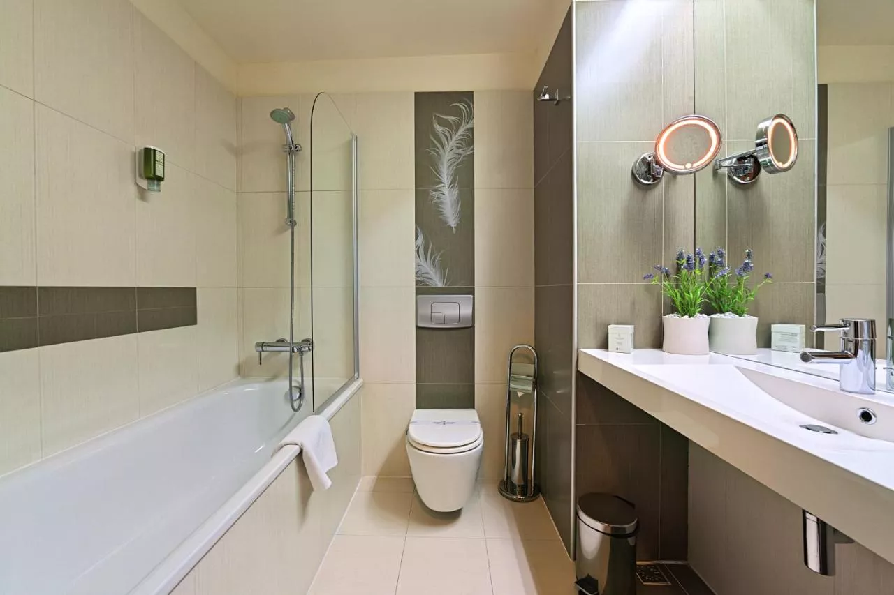 General : Seif pentru laptop Seif Încălzire Aer condiţionat Baie: Halat de baie Prosoape Articole de toaletă gratuite Papuci de casă Uscător de păr Toaletă Duş Hârtie igienică Cadă Baie privată Accesibilitate: Etaje superioare accesibile cu liftul Media/Tehnologie: TV cu ecran plat TV Telefon Canale prin cablu Canale prin satelit Servicii: Serviciu de trezire Facilităţile camerei: Priză lângă pat Pat pliant Exterior: Balcon Dormitor: Lenjerie de pat Garderobă sau dulap Mâncăruri și băuturi: Minibar Vedere: Vedere la oraș