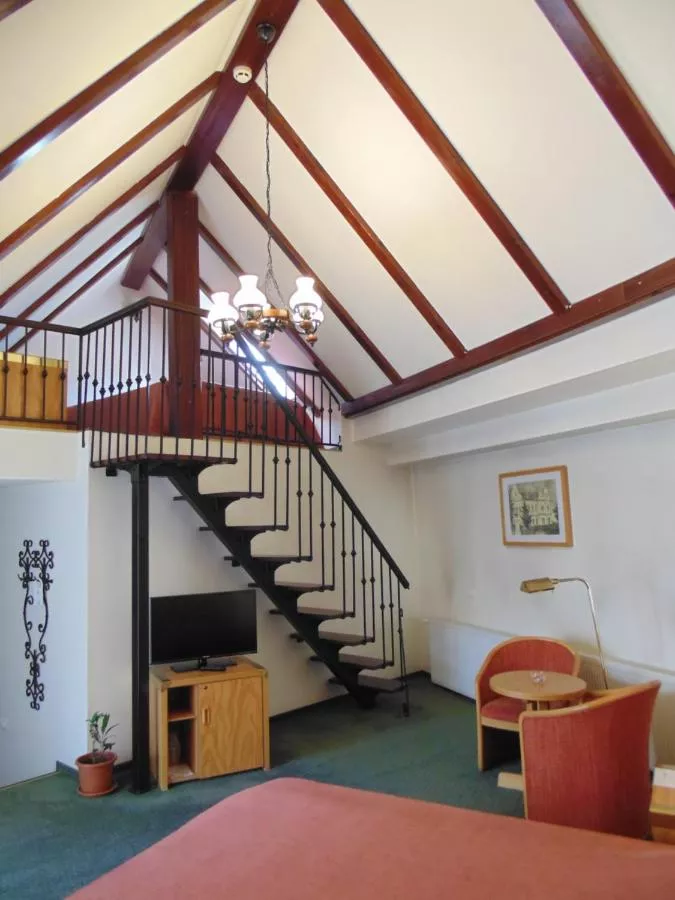 Dimensiuni: 98 mp Numar de camere: 1 camera Suita spațioasă este situată la etajul 2 și este accesibilă pe scări. Baie privată cu duș
