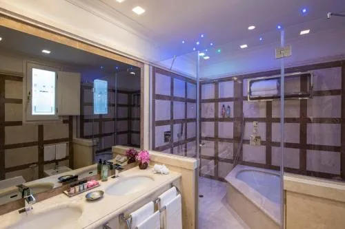 Baie: Halat de baie Prosoape Articole de toaletă gratuite Papuci de casă Cadă sau duş Uscător de păr Toaletă bideu Hârtie igienică Baie privată Bucătărie: Mașină de cafea Cană fierbător General : Seif Încălzire Izolare fonică Aer condiţionat Media/Tehnologie: TV cu ecran plat Telefon Canale prin satelit Servicii: Serviciu de trezire Zonă de living: Canapea Zonă de relaxare Facilităţile camerei: Priză lângă pat Mâncăruri și băuturi: Aparat pentru prepararea de ceai/cafea Minibar Exterior: Balcon Vedere: Vedere Dormitor: Lenjerie de pat Garderobă sau dulap