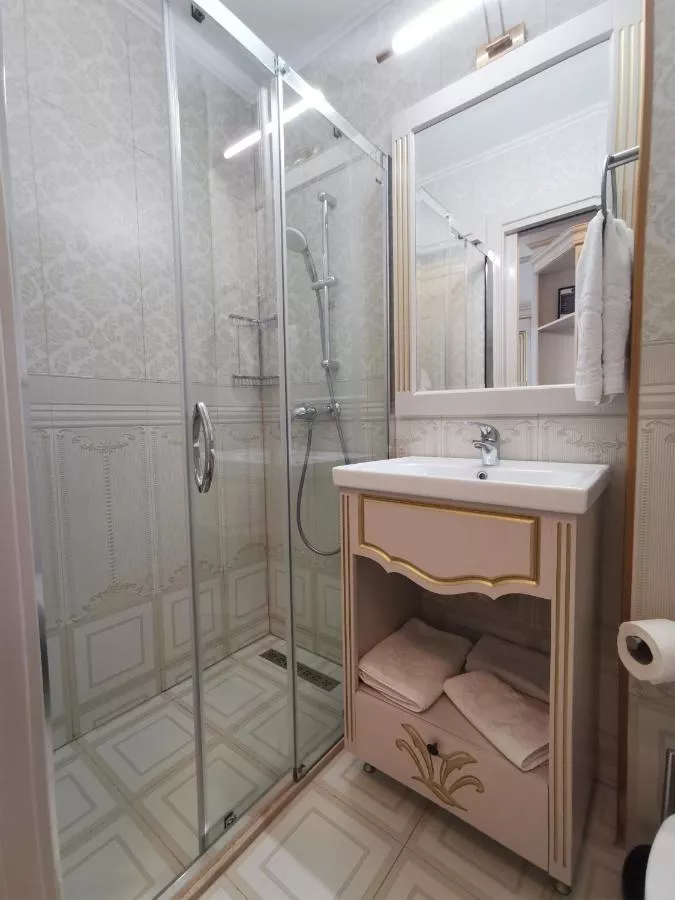 Baie: Halat de baie Toaletă Prosoape Articole de toaletă gratuite Papuci de casă Cadă Uscător de păr Baie privată Bucătărie: Frigider Dormitor: Lenjerie de pat Garderobă sau dulap Accesibilitate: Etaje superioare accesibile cu liftul Media/Tehnologie: TV cu ecran plat Telefon Canale prin cablu Zonă de living: Canapea Zonă de relaxare Distanțare fizică: Aer condiționat individual pentru fiecare cameră de la proprietate General : Încălzire Plasă de ţânţari Aer condiţionat Vedere: Vedere la curtea interioară Exterior: Balcon