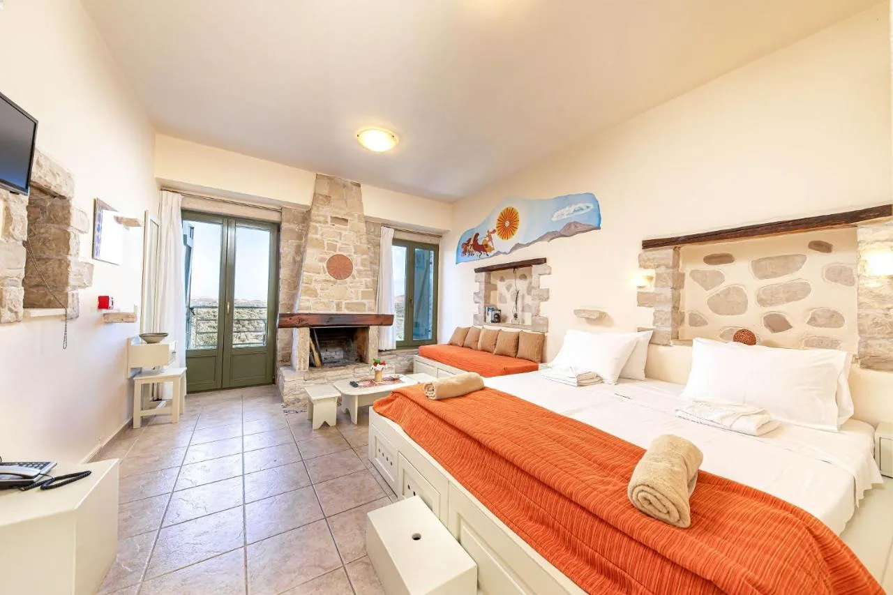 Dotate cu mobilier tradițional și detalii din piatră, toate unitățile cu aer condiționat oferă vederi îndepărtate spre Marea Cretană. Acestea au o zonă de relaxare cu un șemineu și un televizor cu satelit. Fiecare căsuță are o chicinetă cu un cuptor cu microunde și frigider.