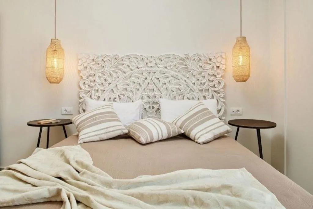 Vila dispune de trei dormitoare frumos amenajate. Două dintre dormitoare sunt dotate cu paturi queen-size și băi proprii, oferind intimitate și confort total. Unul dintre aceste dormitoare este convenabil amplasat lângă piscina privată, astfel încât puteți face un plonjon oricând doriți. Al treilea dormitor este versatil, cu două paturi de o persoană care pot fi ușor transformate într-un pat king-size, ideal pentru oaspeți suplimentari sau copii. O a treia baie comună servește zonele de zi și al treilea dormitor.