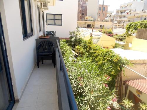 Cameră cu aer condiţionat, TV, frigider şi balcon privat cu vedere la oraşul Chania.