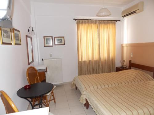 Această cameră are aer condiţionat, televizor, frigider, balcon privat şi vedere la frumosul apus de soare deasupra Mării Cretei.