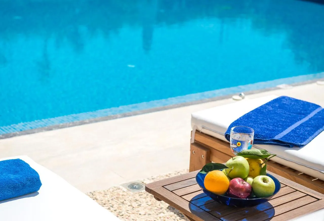 Fiecare vilă oferă acces direct la piscină, dotată cu șezlonguri și umbrele individuale. De asemenea, acestea se deschid către balcoane și verande mobilate, cu vedere la piscină și la Marea Cretană.