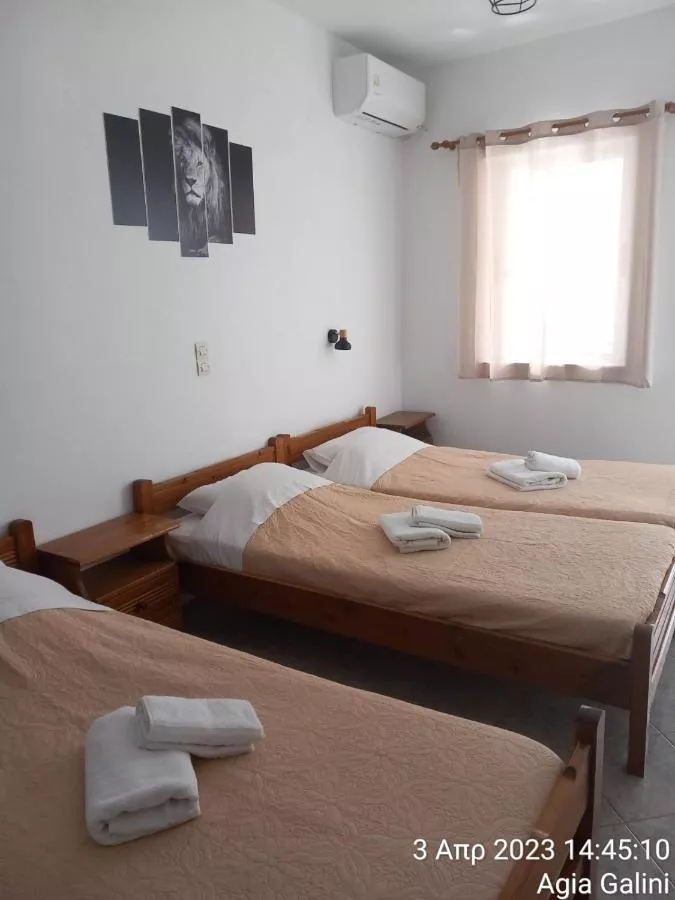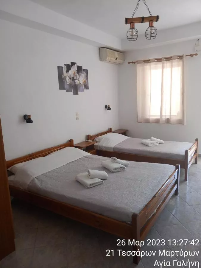Happy Days este situat central în satul de coastă Agia Galini, la 200 de metri de plajă. Oferă studiouri cu aer condiționat, Wi-Fi gratuit și vedere la Marea Libiei și la munte.