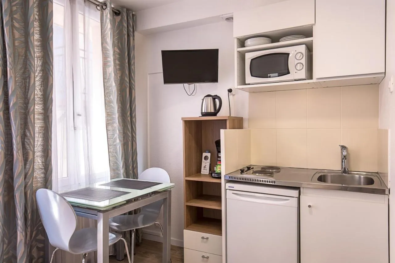 Dimensiuni: 12 mp Numar de camere: 10 camere Offering free toiletries, this studio includes a private bathroom with a shower and a hairdryer. The fully equipped kitchen features a stovetop, a refrigerator, kitchenware and a microwave. The studio offers soundproof walls, a tea and coffee maker, a dining area, a flat-screen TV with satellite channels, as well as an inner courtyard view. The unit offers 1 bed.