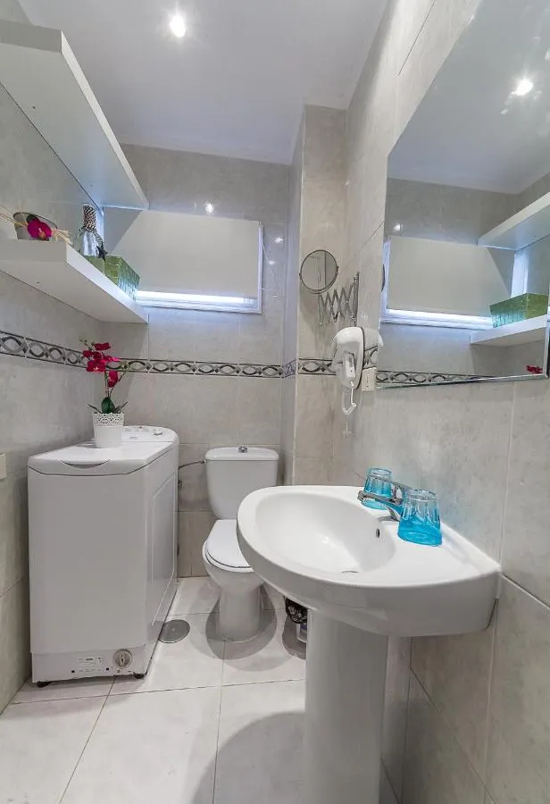 Bucătărie: Mașină de cafea Masă Cuptor cu microunde Frigider Prăjitor de pâine Plită de gătit Ustensile de bucătărie Chicinetă Cană fierbător Bucătărie Maşină de spălat Accesibilitate: Etaje superioare accesibile cu liftul Media/Tehnologie: TV cu ecran plat TV Zonă de living: Canapea Zonă de relaxare Zonă de luat masa General : Fier de călcat Ventilator Pardoseală de gresie/marmură Intrare privată Facilităţile camerei: uscător de rufe Canapea extensibilă Baie: Prosoape Uscător de păr Toaletă Duş Hârtie igienică Baie privată Caracteristicile clădirii: Apartament privat în clădire Exterior: Terasă Balcon Dormitor: Lenjerie de pat Garderobă sau dulap Vedere: Vedere la oraș