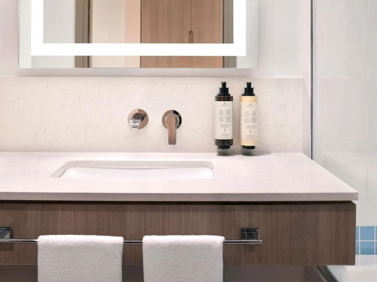 Baie: Halat de baie Prosoape Articole de toaletă gratuite Papuci de casă Uscător de păr Toaletă Duş Hârtie igienică Baie privată General : Seif Fier de călcat Facilităţi de călcat Pardoseală de gresie/marmură Izolare fonică Aer condiţionat Media/Tehnologie: TV cu ecran plat Telefon Canale prin satelit Servicii: Serviciu de trezire Zonă de living: Canapea Facilităţile camerei: Priză lângă pat Canapea extensibilă Mâncăruri și băuturi: Minibar Bucătărie: Cană fierbător Uscător de haine Dormitor: Dressing Garderobă sau dulap Curățenie și dezinfectare: Dezinfectant pentru mâini